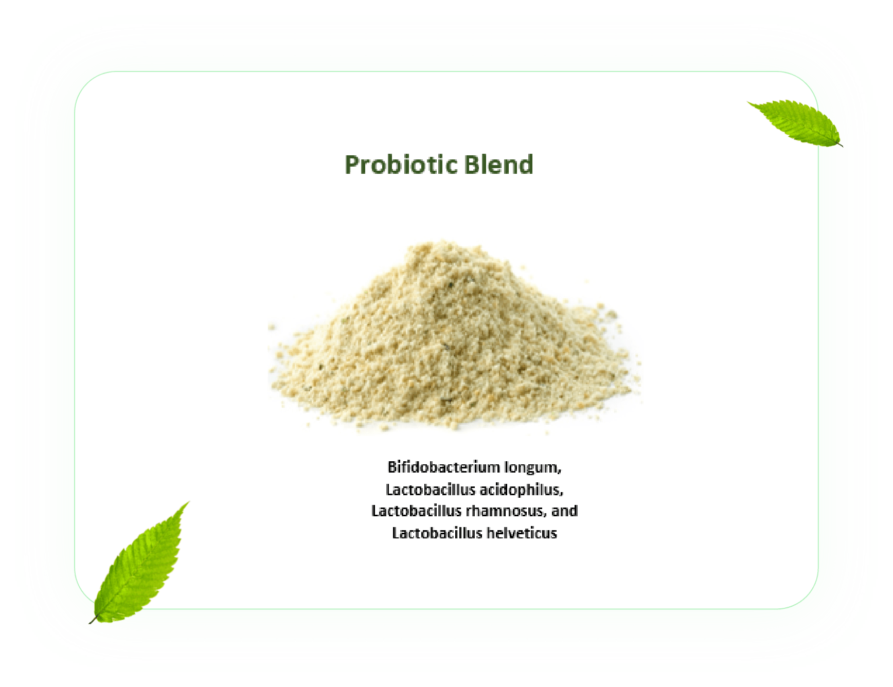 Bifidobacterium longum, Lactobacillus acidophilus, Lactobacillus rhamnosus, and Lactobacillus helveticus.